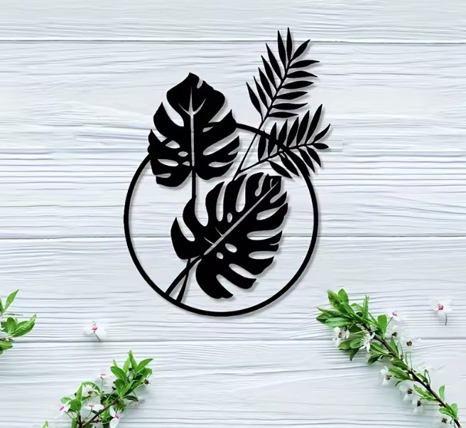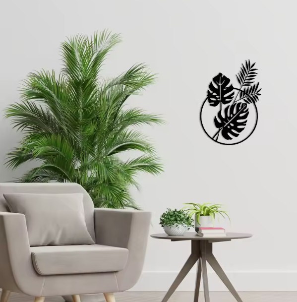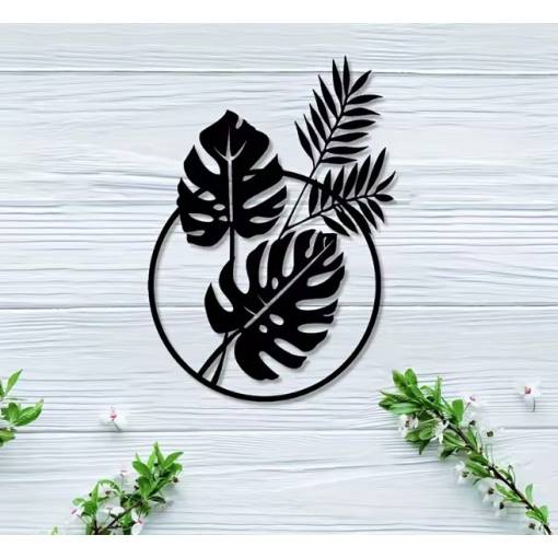 Oživte svůj interiér stylovou kovovou dekorací s motivem tropických listů. Moderní silueta listů monstéry a palmy uzavřená v elegantním kruhu působí harmonicky, vzdušně a okamžitě dodá prostoru nádech přírody i exotiky. Precizní laserový výřez vytváří působivý a lehký design, který na zdi působí téměř jako kresba – čistě, moderně a přitom s nádechem něžnosti.